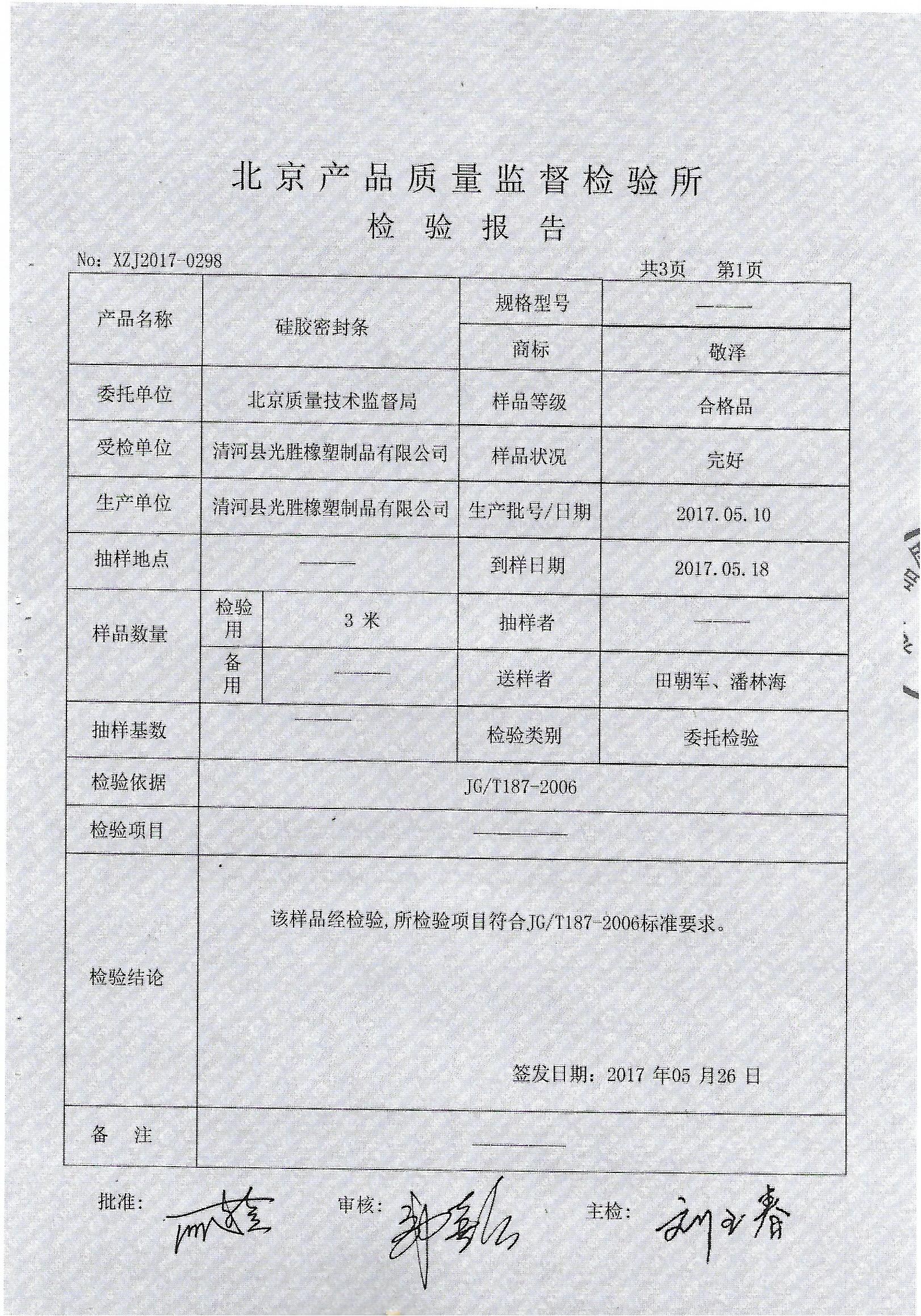 公司生產各種材質硅膠條、密封條等,年生產能力達3000噸以上。同時設有理化室、計量室、檢測計量設備以及各類密封條模具28000余 種,已形成原材料配置,模具開發,產品成型一條龍流水線生產模式
